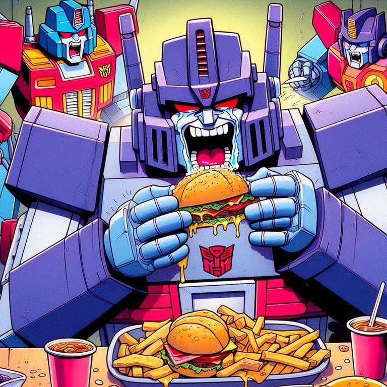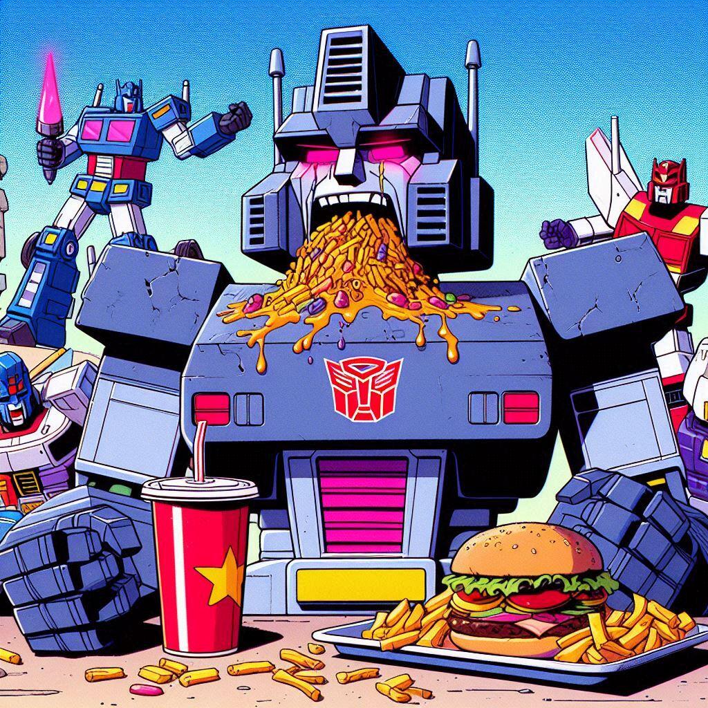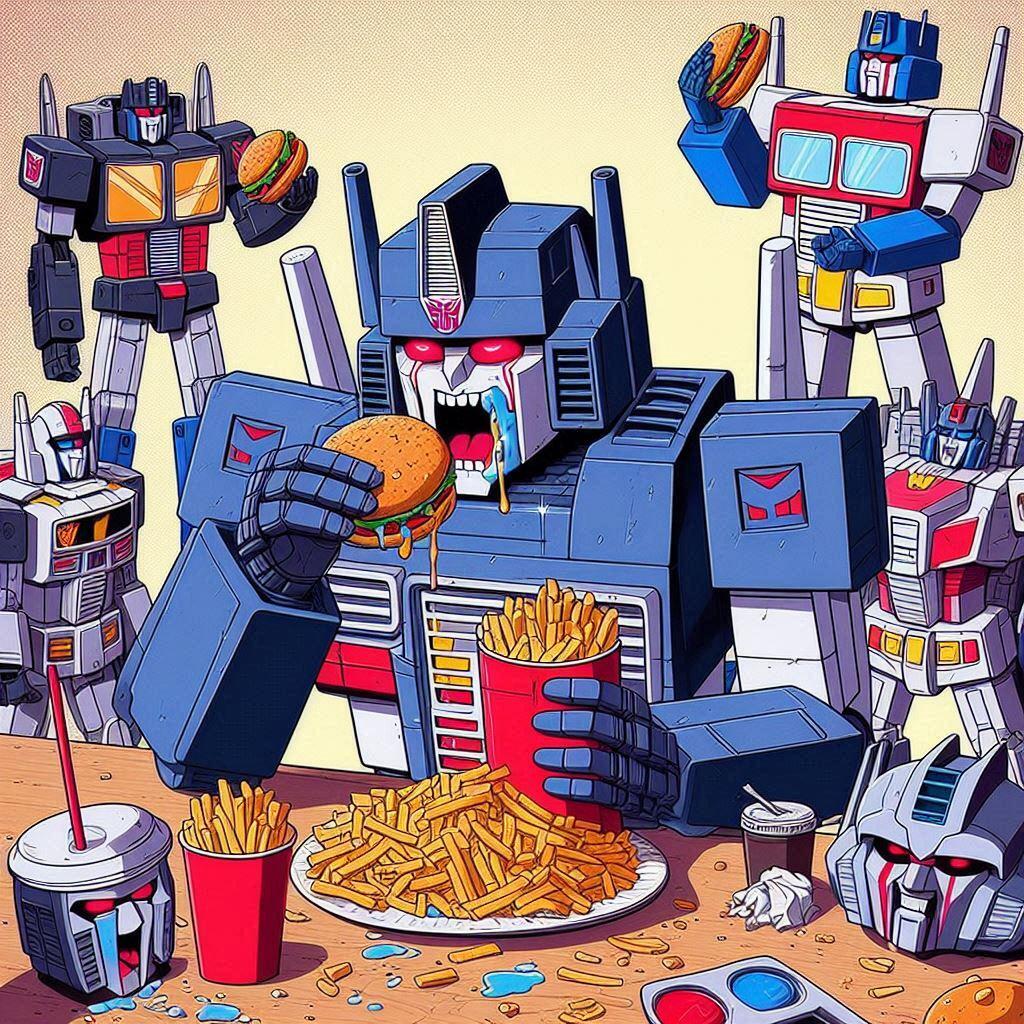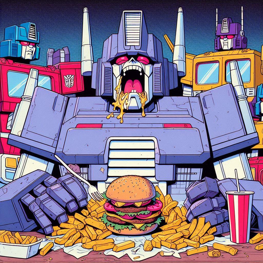 Art of the FolkedGalvatron Loading up on Fast FoodBy EMToast StaffFebruary 9, 2026CommentsHere is another dump of ai generated images I had laying around that made me laugh. I have a more Transformers ones coming up.
