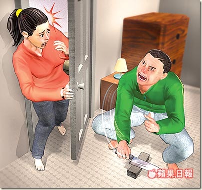 Husband Flashes Wife's Clients, Threateningly Sharpens Knife